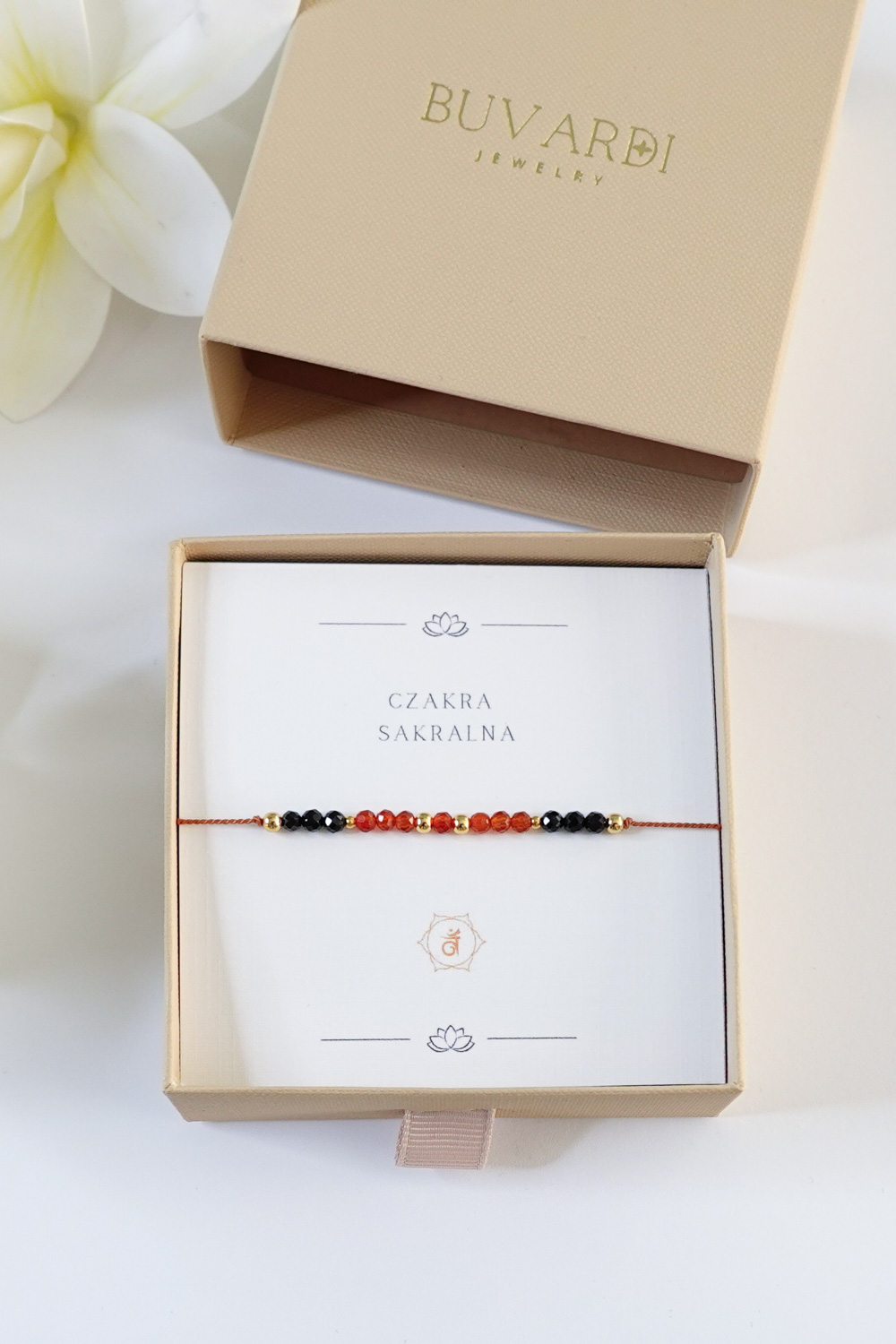 Bransoletka czakry sakralnej z karneolem to subtelna bransoletka stworzona, aby wzmocnić czakrę sakralną.