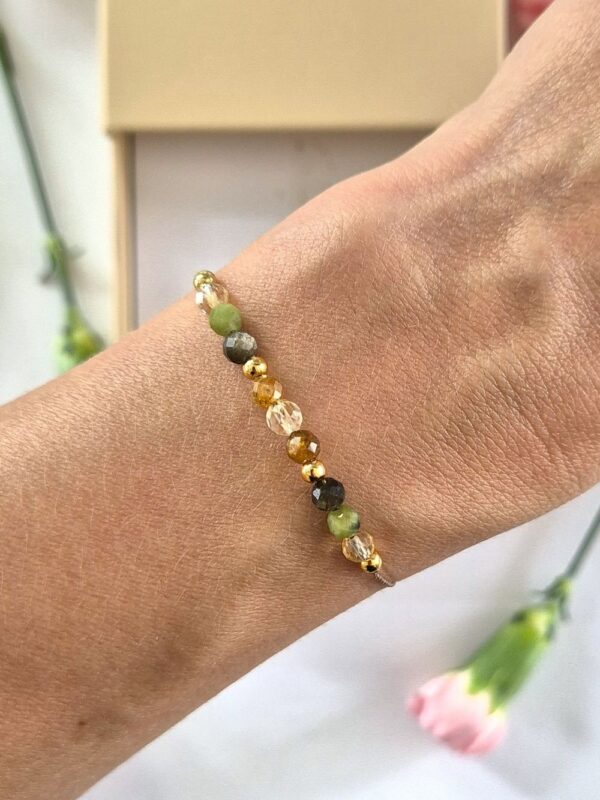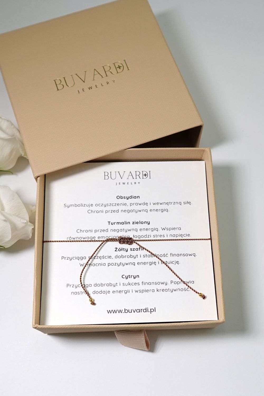 Bransoletka wykonana jest na trwałym sznurku, dzięki czemu dopasowuje się do nadgarstka i idealnie nadaje się do codziennego noszenia.
