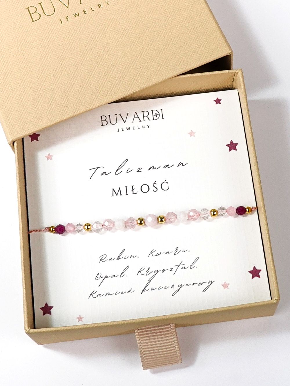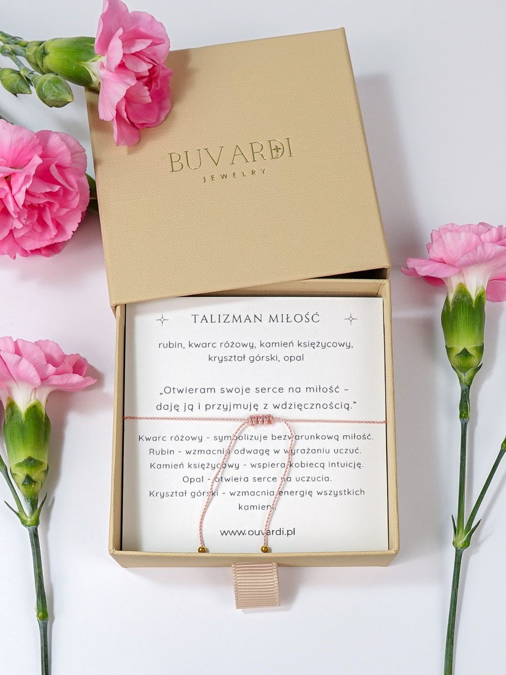 Bransoletka na miłość z kolekcji Talizmany polecana jest osobom, które poszukują miłości oraz tym, które pragną odbudować więź z bliską osobą. Jest także doskonałym wsparciem dla osób, które pragną zaakceptować siebie i swoje emocje.