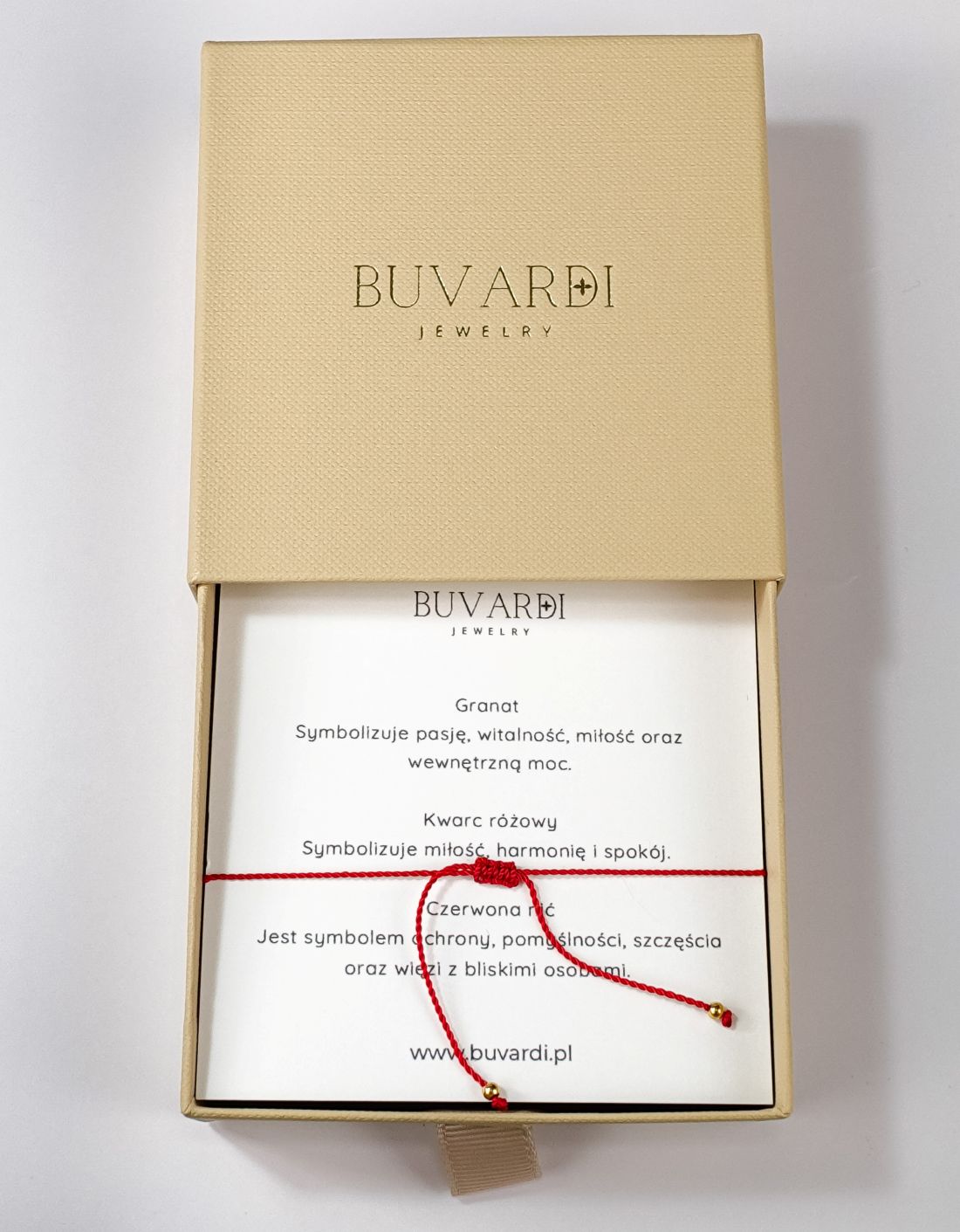 Twoją bransoletkę pakujemy w eleganckie beżowe pudełko na biżuterię z logo firmy w złotym kolorze. Dodatkowo, jeśli wybierzesz opcję z dedykacją, do pudełka dołączamy Twoją karteczkę z życzeniami. Wysyłamy w ciągu 24 godzin, aby dotarła do Ciebie jak najszybciej.