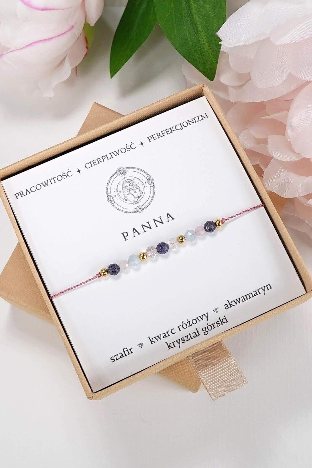 PANNA – bransoletka Znaki Zodiaku – szafir, kwarc różowy, akwamaryn, kryształ górski